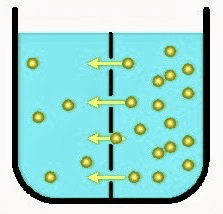 The figure here shows how substances in solutions move from areas of high concentration to areas of low concentration.
